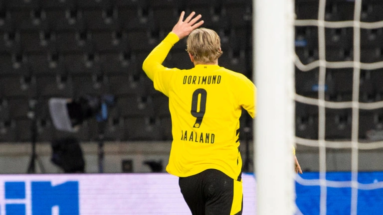 Un póquer anotador del noruego Erling Haaland, recientemente elegido como 'Golden Boy' (mejor joven de la temporada), despertó al Borussia Dortmund, que remontó el tanto inicial del brasileño Matheus Cunha para golear en Berlín al Hertha (2-5) y situarse como principal amenaza al Bayern Múnich.
