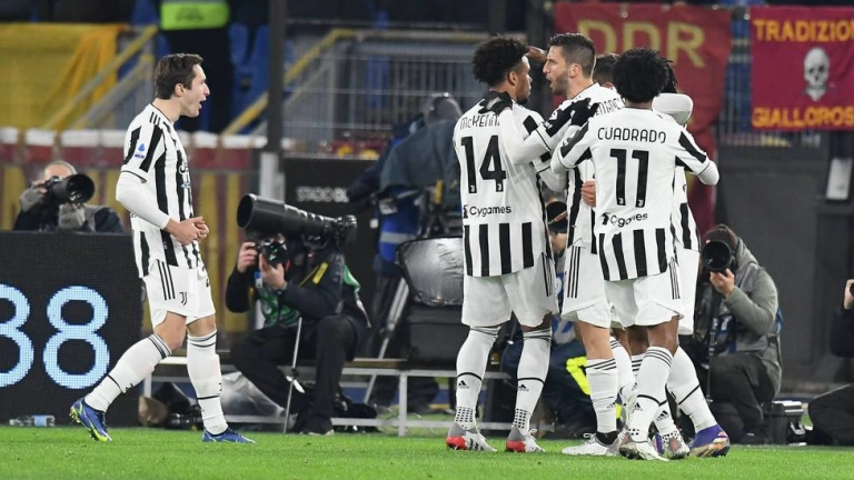 La Juventus logró este domingo un trascendental triunfo por 4-3 en el estadio Olímpico contra la Roma del portugués José Mourinho, tras remontar un 1-3 adverso y salvarse en los últimos minutos tras un penalti fallado por Lorenzo Pellegrini, lo que le permitió colocarse a tres puntos de la Atalanta, cuarto, aunque con un partido más en la Serie A italiana.