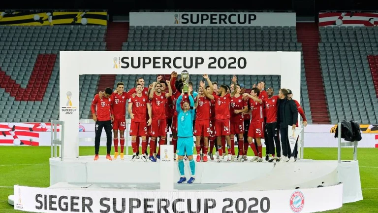 El Bayern obtuvo este miércoles la supercopa alemana al derrotar por 3-2 al Borussia Dortmund, gracias a un gol de rebote de Joshua Kimmich en el minuto 82 en medio de un partido en el que hubo fases de dominio de los dos equipos. El Bayern completa su quinto título del año aunque por momentos la vida se le enredó y estuvo en el segundo tiempo contra las cuerdas tras haber estado 2-0 adelante en el marcador en la primera parte.