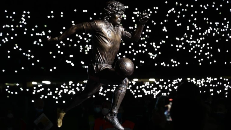 Pocos días después de que se cumpliera un año del fallecimiento de Maradona, Nápoles dedicó al Pibe de Oro una estatua que le representa a tamaño natural y con el mismo peso con el que conquistó el Mundial de México 1986, 72 kilos. La estatua fue regalada al club por Stefano Ceci, colaborador y amigo de Maradona, y representa al Pelusa corriendo con el balón encima del número que convirtió en leyenda, el 10.
