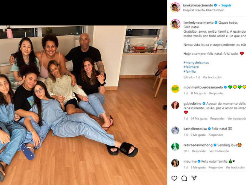 "Feliz Navidad. Gratitud, amor, unión, familia. La esencia de la Navidad. Os damos las gracias a todos por todo el amor y la luz que enviáis", escribió la hija de Pelé Kelly Cristina Nascimento junto a una fotografía de la familia en el centro médico en el que se encuentra el exjugador, de 82 años.