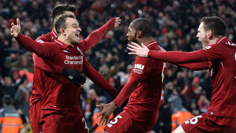 Mourinho planteó una muralla para frenar al Liverpool, De Gea la sostuvo y Xherdan Shaqiri la tiró abajo, cuando decantó el Clásico de Inglaterra (3-1) con un doblete que mantiene al Liverpool líder y deja al Manchester United a 19 puntos del liderato de la Premier League.
