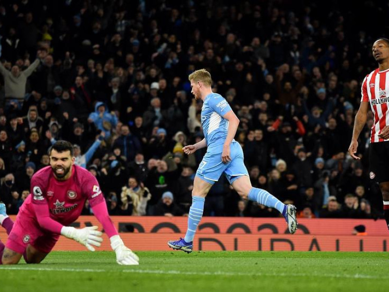 El Manchester City se impuso (2-0) este miércoles al Brentford en la jornada 24 de la Premier para recuperar el camino victorioso en el liderato de la Premier, obligando al Liverpool a seguirle el ritmo este jueves ante el Leicester City. Los de Pep Guardiola, que venían de un empate en liga en el último partido ante el Southampton, sumaron de tres de nuevo para ponerse con 60 puntos. El líder mete 12 al segundo, un Liverpool con dos partidos menos y que juega este jueves en Anfield, mientras que el Chelsea es tercero con 47. Tuvo paciencia el dominador de la Premier hasta que encontró las ocasiones y los goles, con descuidos también del Brentford que no perdonaron Raheem Sterling y Kevin De Bruyne. El primero forzó el penalti que convirtió Riyad Mahrez y, en el segundo tiempo, el belga hizo el 2-0 en un regalo del meta rival. Cancelo volvió a exhibir su gran momento de forma y el City vuelve a la carga para pasar la pelota a sus perseguidores.