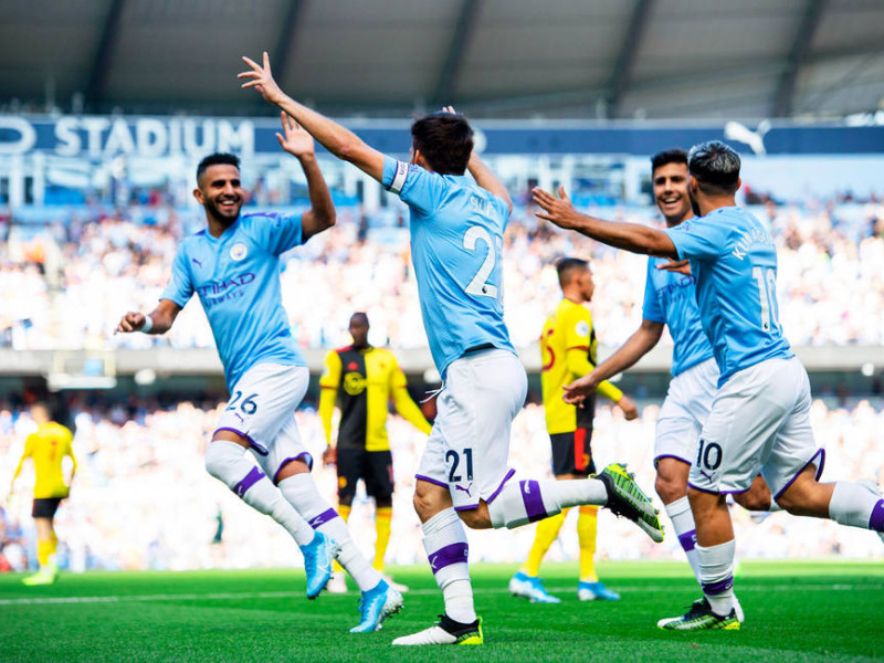 Kun Agüero de penalti, Mahrez de falta, Bernardo Silva de cabeza y Otamendi en acción de estrategia ponían goles al vendaval del City ante la locura de la afición que acudió al Etihad Stadium. Aunque rebajó el ritmo, los goles no dejaron de llegar en una segunda parte en la que se produjo el debut en la 'Premier' del español Eric García. Bernardo Silva completó su triplete remachando a placer dos acciones y De Bruyne puso el broche con un gran derechazo.