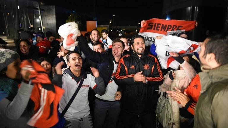 Pese a la convocatoria de la peña Filial Madrid Club Atlético River Plate, apenas una veintena de aficionados se dio cita a las puertas del hotel para recibir a sus jugadores, a los que se vio con caras de cansancio tras un largo viaje desde Buenos Aires. Los aficionados de River, pese a ser pocos en número, sí se dejaron notar al recibir a su equipo con aplausos y cánticos de apoyo a sus jugadores.