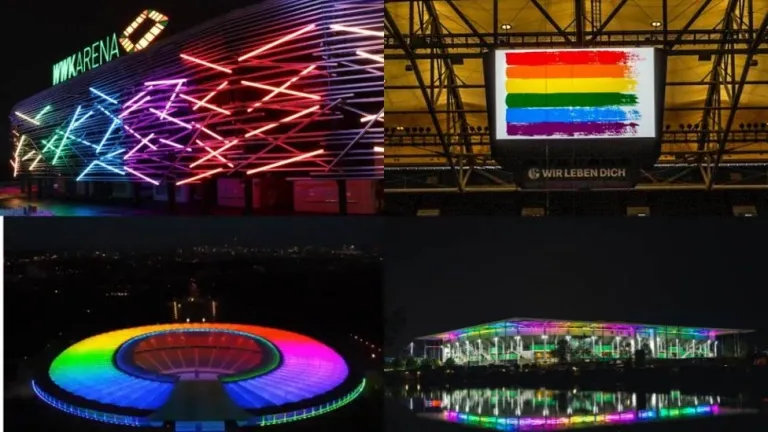 Wolfsburgo, Hertha Berlín, Schalke 04 y Colonia, ya han iluminado sus estadios con la bandera arcoiris en apoyo a al Allianz Arena tras prohibir la UEFA su iluminación ante Hungría