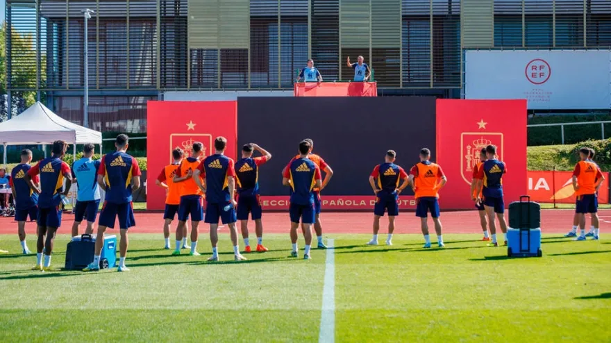 El seleccionador sigue haciendo pruebas para el duelo de este sábado frente a Suiza en el estadio de La Romareda. Los 25 convocados trabajaron al mismo ritmo.