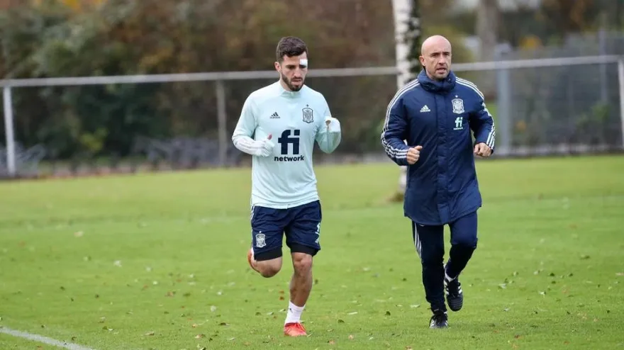 En este entrenamiento, Gayá se ha entrenado con más suavidad después del golpe que recibió en el partido ante Holanda.