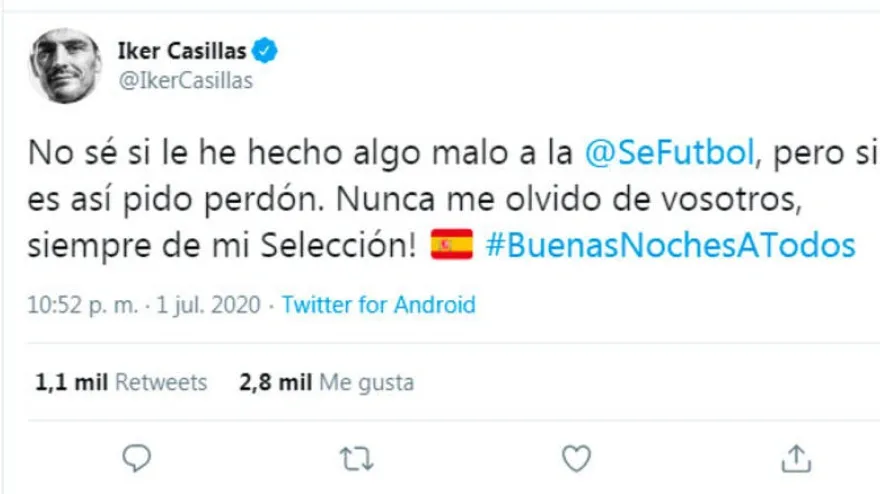 Casillas: "Pido perdón si le he hecho algo malo a la selección"