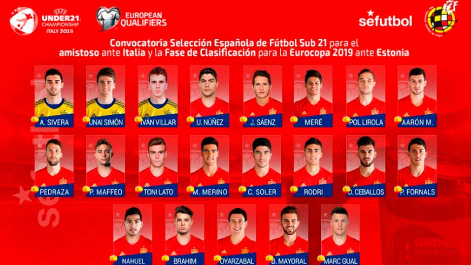 Lista de convocados con la Sub-21