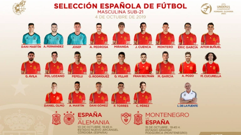 Sin Ansu Fati, de la Fuente vuelve a contar con la columna vertebral por la que apostó en la primera lista de esta nueva Sub-21 para los dos encuentros que disputará el combinado nacional. El primero, el 10 de octubre en Córdoba frente a Alemania -reeditando la final del pasado Europeo que venció España- y el día 15 contra Montenegro en el Estadio Gradski (Podgorica).
