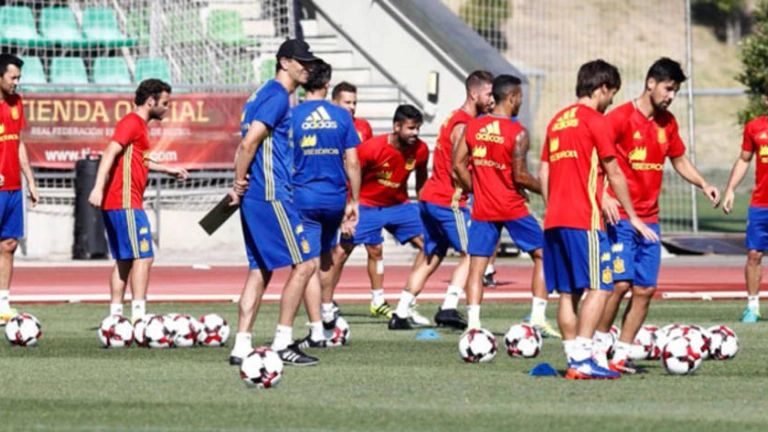 España completó su último entrenamiento en la mañana del sábado antes de desplazarse a León, donde encara el primer encuentro de clasificación al Mundial 2016 el lunes.Se ejercitaron todos los internacionales salvo Morata, que por el fuerte golpe sufrido en su muslo derecho se quedó en el interior de las instalaciones efectuando trabajo de readaptación a la espera de conocer si finalmente viaja o no a León.En la tarde de este sábado tomará la decisión final el seleccionador Lopetegui, que a buen seguro no forzará ante Liechtenstein al delantero madrileño, dada la diferencia de calidad ante uno de los rivales más débiles del grupo.La figura de Diego Costa va perfilándose como la que sustituirá en el equipo titular a Morata, después de la buena imagen dejada en Bruselas ante Bélgica y con el deseo de que al final encuentre los goles que se le han negado en su pasado con la selección española. Hasta el momento solo firmó un tanto en once apariciones con la Roja.Las bromas de Diego Costa con Sergio Ramos, Jordi Alba y David De Gea, golpeando a puñetazos un muñeco hinchable de los que se sitúan en las barreras para el ensayo de faltas, marcaron el inicio de un entrenamiento en el que tras el calentamiento y los rondos en los minutos abiertos a la prensa, España terminó de preparar ya a puerta cerrada el estreno en la fase de grupos al Mundial 2018.Encuadrada en el Grupo G junto a Italia, Albania, Israel, Macedonia y Liechtenstein, el reto de acabar primero y conseguir el único pase directo al Mundial, lo iniciará en el Reino de León con un once en el que Lopetegui no tiene previsto introducir muchas novedades.La portería, defendida por De Gea, y la defensa con Dani Carvajal, Gerard Piqué, Sergio Ramos y Jordi Alba tendrá continuidad. Así como Sergio Busquets como figura de medio centro destructivo y Thiago Alcántara como creativo. El buen partido de Koke le convierte en el favorito para completar el centro del campo, y en ataque el doblete de Silva a Bélgica le hace fijo, Diego Costa sería el sustituto de Morata y en la derecha Vitolo es el favorito a repetir y menos opciones tienen Lucas Vázquez o Juan Mata.Los internacionales españoles tendrán una tarde tranquila para recuperar energías en la residencia de La Ciudad del Fútbol, donde tras la siesta merendarán a las 17:15 horas (15:15 horas GMT) y a las 18:00 se reunirán con Lopetegui, para analizar al próximo rival en vídeo y seguir aprovechando el poco tiempo con el nuevo seleccionador, para conocer su filosofía.El desplazamiento a León lo efectuarán el domingo en AVE, desde las 11:00 horas. Partirán de Atocha, para llegar al destino tres horas después y desplazarse al Hotel Fray Luis de León, donde quedarán alojados.A las 19:15 horas hablará en rueda de prensa Lopetegui con dos jugadores en el estadio Reino de León y desde las 20:00 horas será el entrenamiento a puertas abiertas, con la presencia de aficionados.