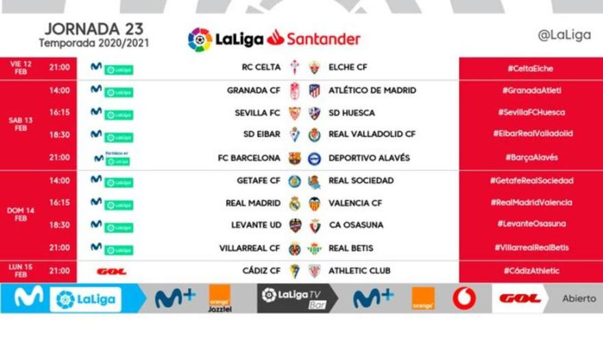 Tras conocerse las semifinales de la Copa del Rey, LaLiga ha modificado varios horarios tanto de la jornada 23 y también del Levante-Atlético que se jugará el 17 de febrero.