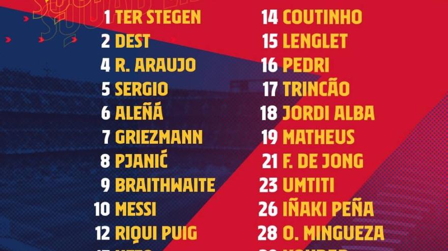 Koeman solo tiene la baja de Junior Firpo con permiso del club y llama a 22 jugadores sin los lesionados: Dembélé, Sergi Roberto, Piqué y Ansu.