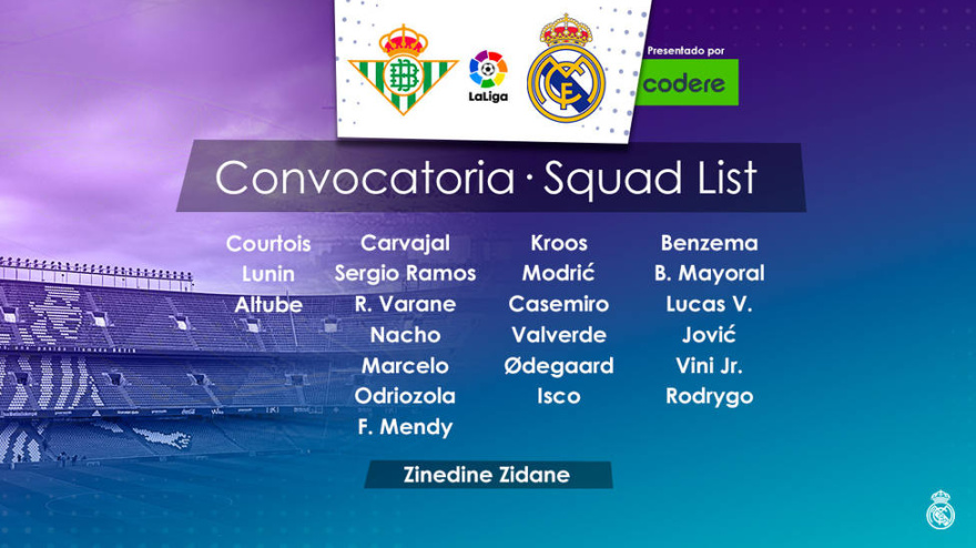 Mientras, el central Eder Militao y el delantero Mariano Díaz continúan de baja por lesión de cara al partido de este sábado ante el Betis.