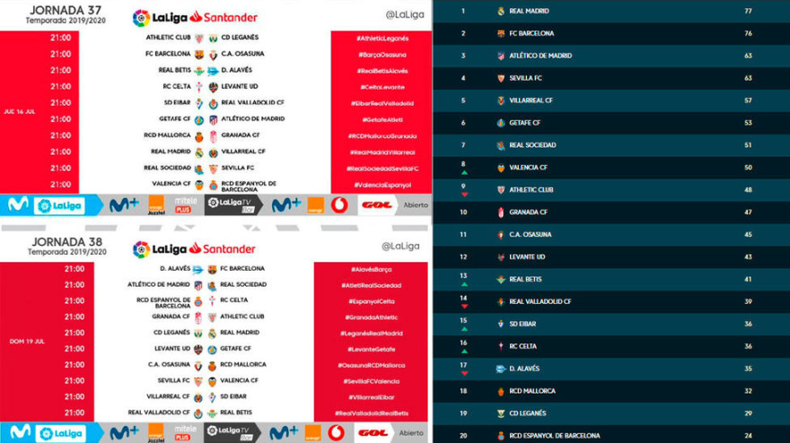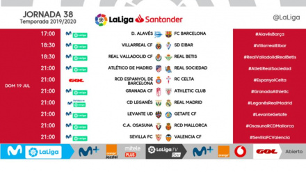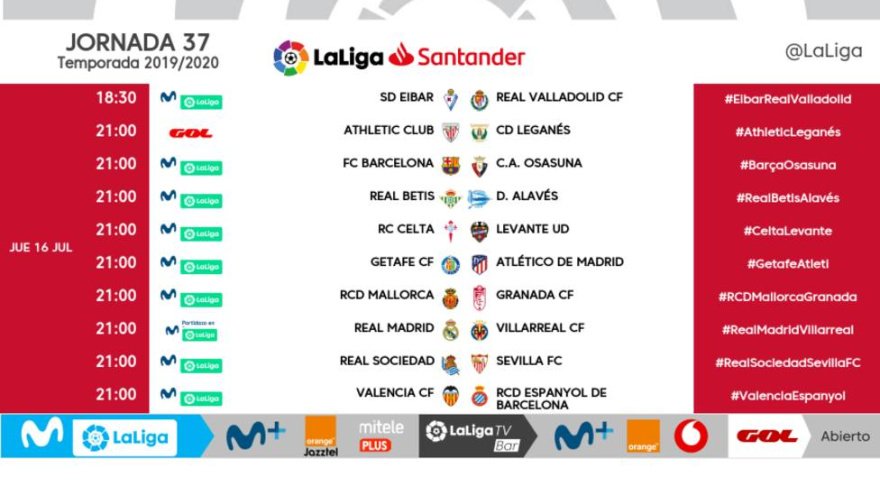 Horario unificado el jueves 16 y el domingo 19 de julio a las 21:00 en las dos últimas jornadas de LaLiga