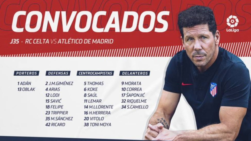 Carrasco se suma a las bajas de Joao Félix, Mario Hermoso y Sime Vrsaljko por lesión y a la baja de Diego Costa por sanción.