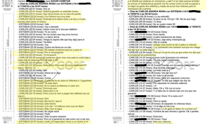 Los dos exfutbolistas hablan de que supuestamente siete jugadores del Villarreal habrían recibido 1,8M€ por dejarse perder y que Jorge Molina era conocedor de este asunto.