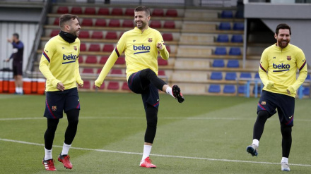 El central se retiró el martes con dolores en el tobillo, pero todo hace indicar que estará en el Bernabeú. Además, Jordi Alba hizo parte de la sesión.