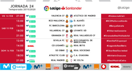 El partido que debía jugarse el sábado 15 de febrero a las 21:00 intercambia su horario con el del Granada-Valladolid y pasa al viernes a las 21:00 horas.