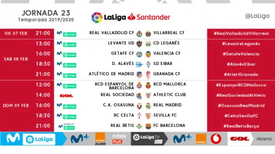 LaLiga da a conocer los horarios de la 23ª jornada