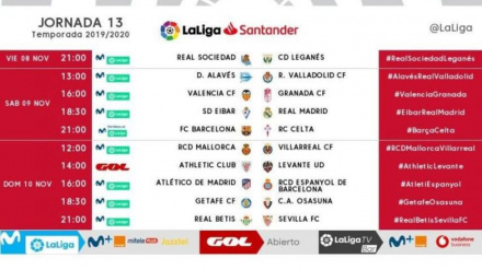 LaLiga ha dado a conocer este lunes los horarios de la 13ª jornada donde destaca el Betis-Sevilla que servirá para cerrar la jornada.