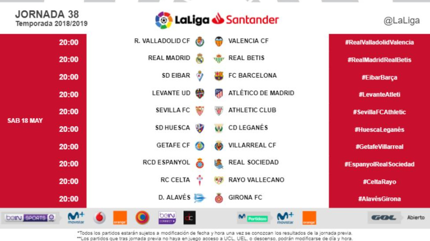 Aunque LaLiga anuncia horario unificado, los definitivos no se conocerán hasta finalizada la jornada 37.