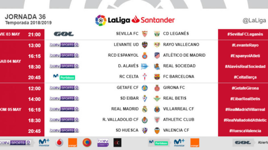 Horarios 36ª jornada