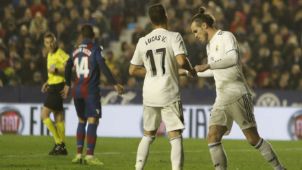 Bale, molesto tras marcar de penalti el segundo gol del Madrid ante el Levante, no quiso celebrar el gol con sus compañeros.