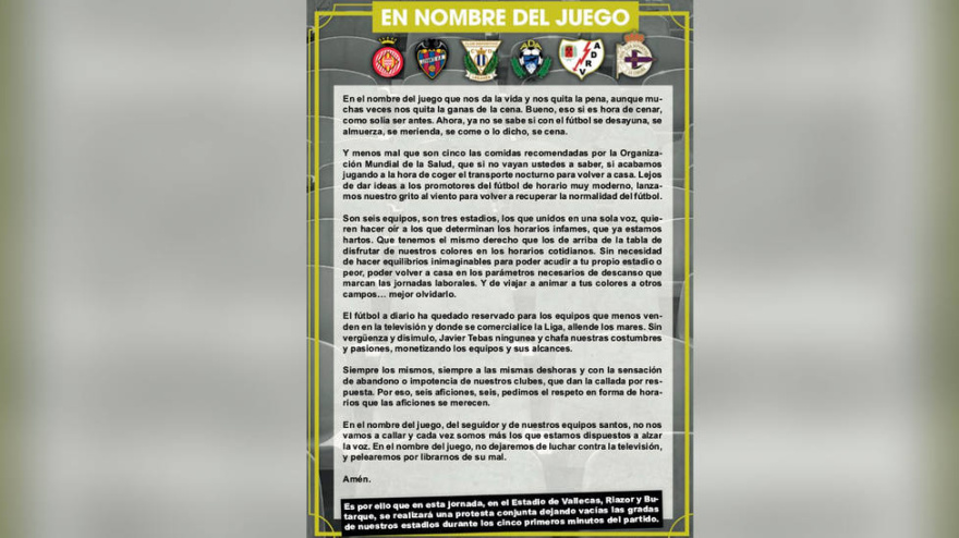 Las Peñas de los seis clubes han emitido un comunicado para protestar contra Javier Tebas de modo similar a lo que ocurrió en Mendizorroza.
