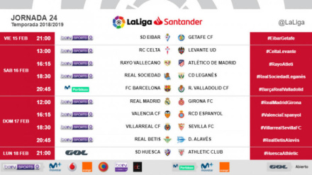 La 24ª jornada se abrirá el viernes 15 de febrero y se cerrará el lunes 18. El Real Madrid-Girona se jugará el domingo 17 a las 12:00 en el Bernabéu.