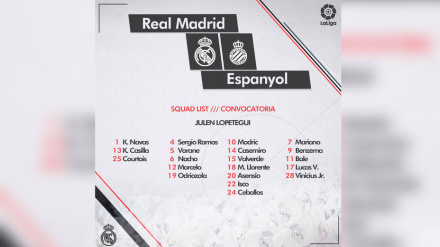 La lista de convocados del Real Madrid ante el Espanyol la conforman 20 futbolistas, entre ellos, Vinicius Jr.
