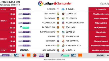 LaLiga ha dado a conocer los horarios de la décima jornada de LaLiga Santander donde destaca el Barça-R.Madrid que se jugará el domingo 28 de octubre a las 16:15h.