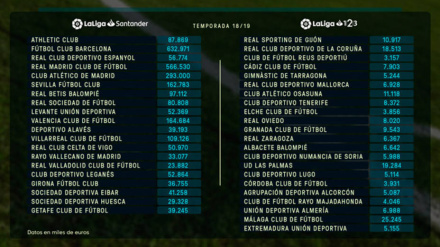 Este límite de coste de plantilla es el importe máximo que cada club/SAD puede consumir durante la temporada 2018/2019, y que incluye el gasto en jugadores, primer entrenador y el equipo técnico.