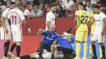 El defensa sevillista se lesionó en el minuto 81 al apoyar mal el brazo tras una aparatosa caída.