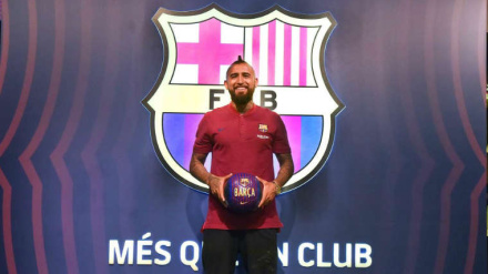 El centrocampista chileno aterrizó en la noche del domingo en Barcelona. Será presentado este lunes a las 13:00h en el Camp Nou y posteriormente dará su primera rueda de prensa como jugador culé.