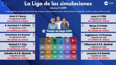 LaLiga de las simulaciones: España lidera los ránkings de caídas al suelo, amarillas, rojas y faltas cometidas