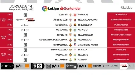 LaLiga publica los horarios de las jornadas 12, 13 y 14, las últimas antes del Mundial de Catar