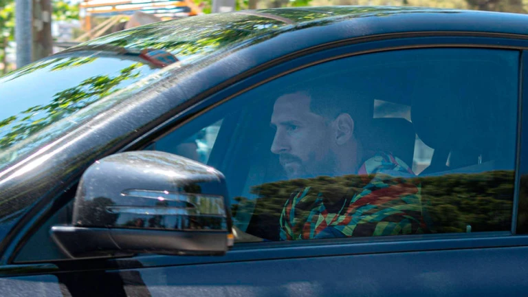 Leo Messi, en su coche, saliendo de la Ciudad Deportiva. CORDONPRESS