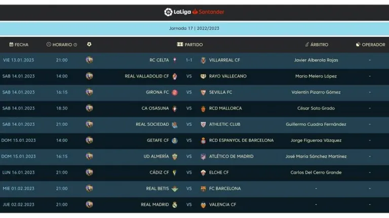 Partidos de la 17ª jornada
