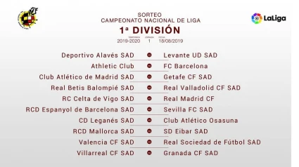 Athletic Club-Fútbol Club Barcelona, Celta de Vigo-Real Madrid, Atlético de Madrid-Getafe y Espanyol-Sevilla son parte de los enfrentamientos de la primera jornada de la Liga 2019-2020, según el sorteo realizado este jueves por la Federación Española de Fútbol (RFEF).
