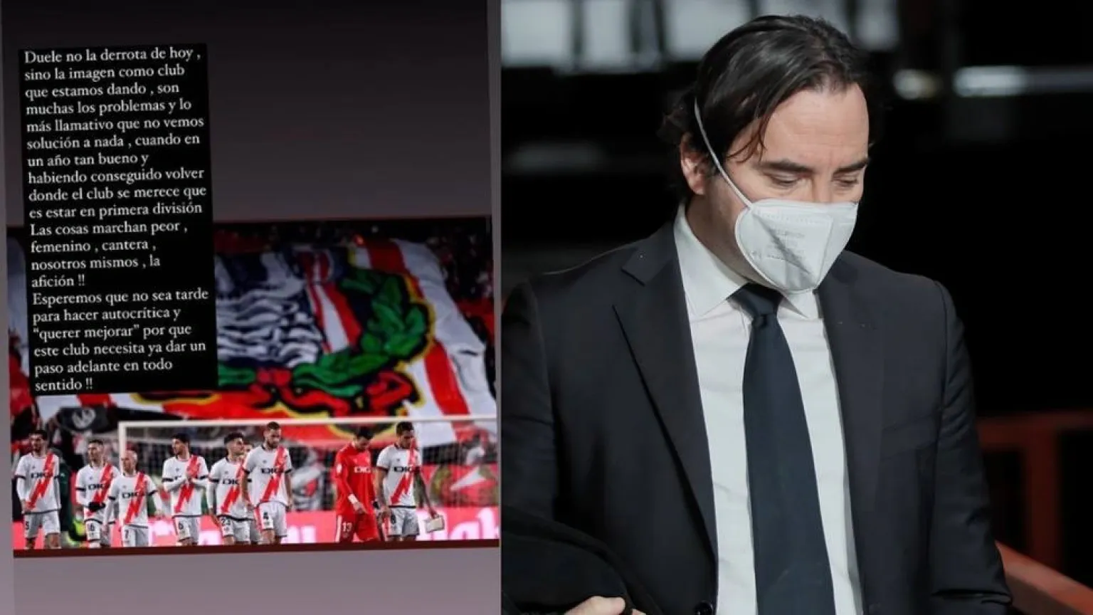 Esa imagen es el reflejo de lo que se vive en Vallecas y del estallido social que hay alrededor de la figura del máximo dirigente, que parece cada vez más distanciado de la afición en todos los aspectos y en un callejón sin salida que ya salpica al equipo.