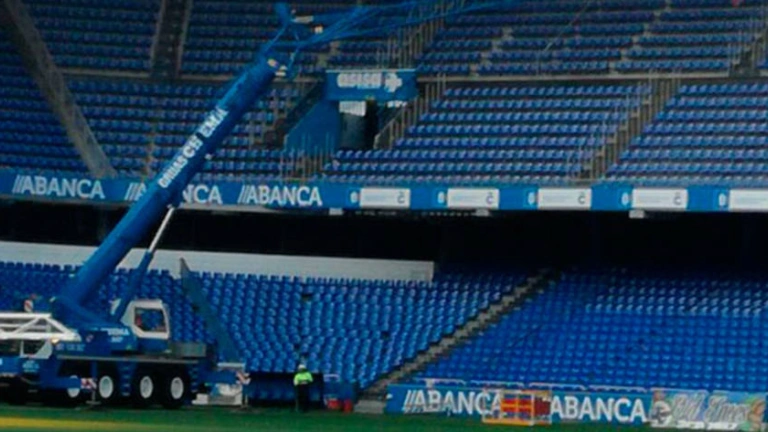 Este miércoles han comenzado los trabajos de reparación de la cubierta de Riazor. @DCCoruna.