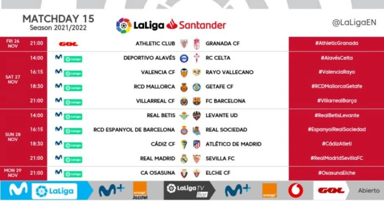 Conoce los horarios de la 15ª jornada de LaLiga Santander