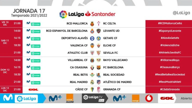 Conoce los horarios de la 17ª jornada de LaLiga Santander