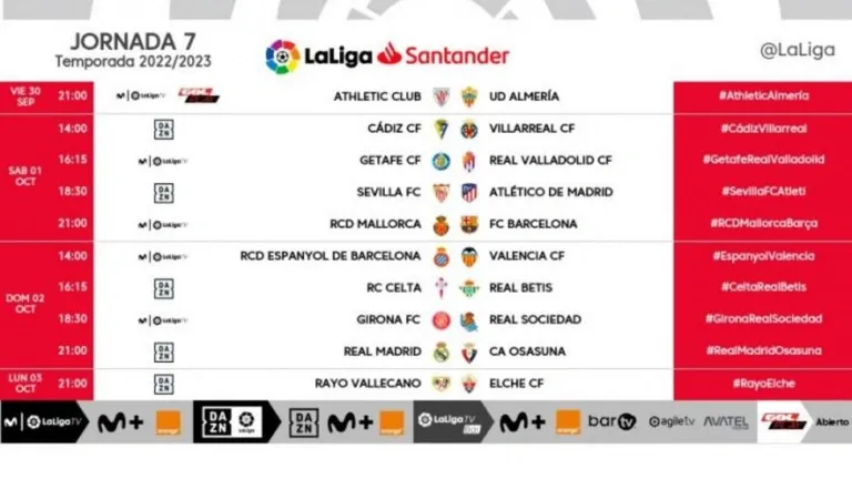 Conoce los horarios de la 7ª Jornada de LaLiga Santander