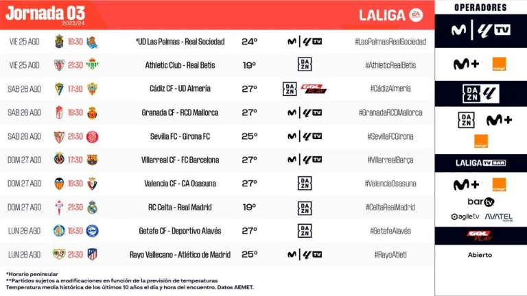 Consulta los horarios de la tercera jornada de LaLiga EA Sports