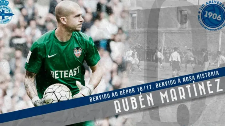 El club Deportivo de La Coruña ha confirmado la contratación del coruñés Rubén Martínez, que se incorpora al equipo hasta el 30 de junio de 2018 como portero para la temporada 2016-17. Rubén procede del club Levante, con el que tuvo contrato la temporada pasada. El guardameta, que cumplió el mes pasado 32 años, se formó en el equipo coruñés del Orillamar, desde el que dio el salto al FC Barcelona, en el que completó su formación. Con el conjunto azulgrana llegó a debutar en Primera División en dos partidos de la temporada 2004-05 por la expulsión de Víctor Valdés ante el Valencia el 18 de diciembre de 2004 con el holandés Frank Rijkaard como entrenador. Martínez siguió vinculado al FC Barcelona hasta la conclusión de la temporada 2006-07 y, posteriormente, pasó por las filas del Racing de Ferrol y el Cartagena, regresó a Primera División con el Málaga en la Liga 2010-11 y continuó en esa categoría el siguiente curso con el conjunto andaluz, dos más con el Rayo Vallecano, uno en el Almería y otro en el Levante. El guardameta coruñés, que no pudo evitar los descensos con el Almería y el conjunto valenciano, intentará arrebatarle protagonismo en el Deportivo al argentino Germán Lux, que renovó su contrato la temporada pasada, y al internacional polaco Przemyslaw Tyton, otra de las caras nuevas del equipo para esta campaña.