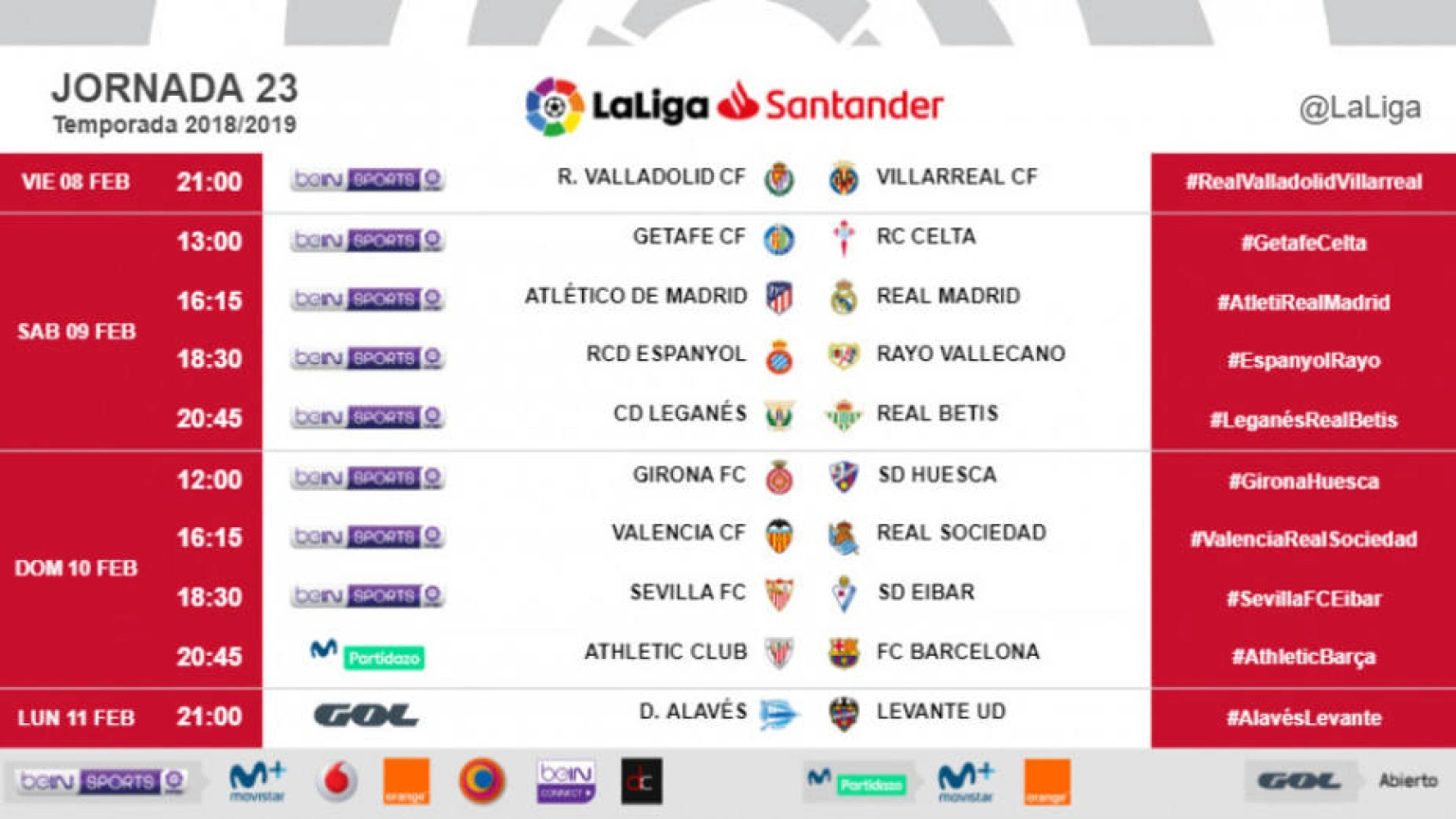 Horarios 23ª jornada