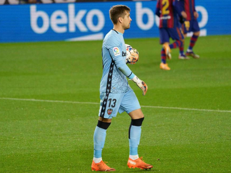 Aitor Fernández, el héroe del partido para el Levante con sus paradas.